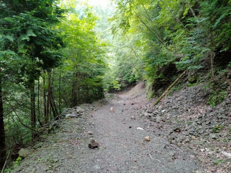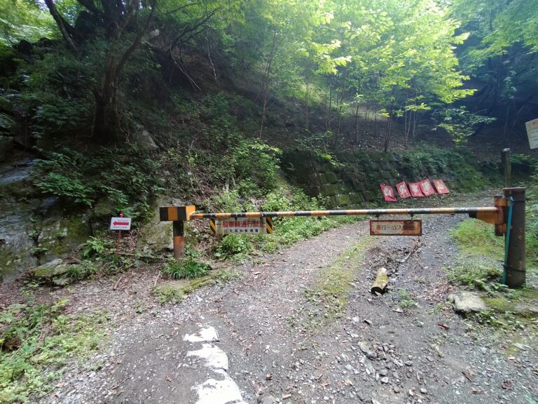 行動開始。林道を数分歩いていると分岐が現れます。バーをくぐって林道に進むか、左の上級者向けのルートに行くか。一応左も行ったことがありますが、今日はそこまでの気力と体力が無かったので、林道を進みます。