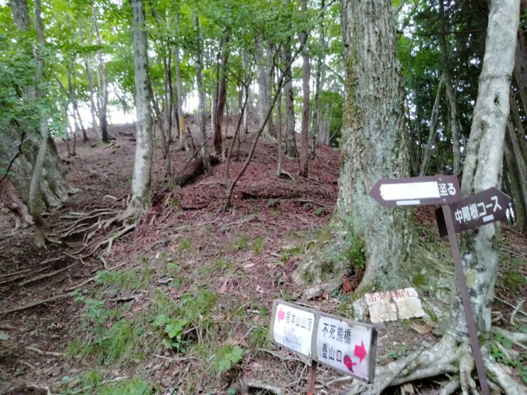 ←中尾根コースと熊鷹山→の分岐です。左の中尾根コースに進みます。