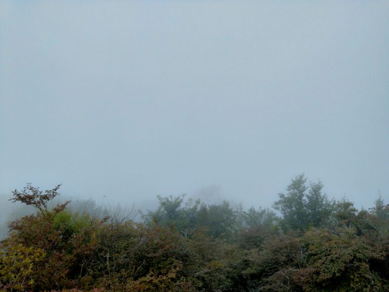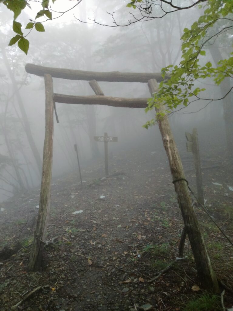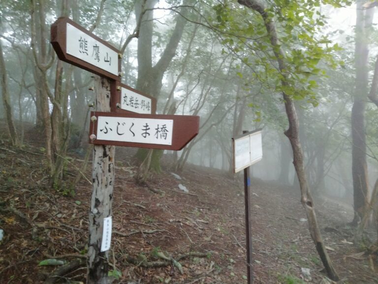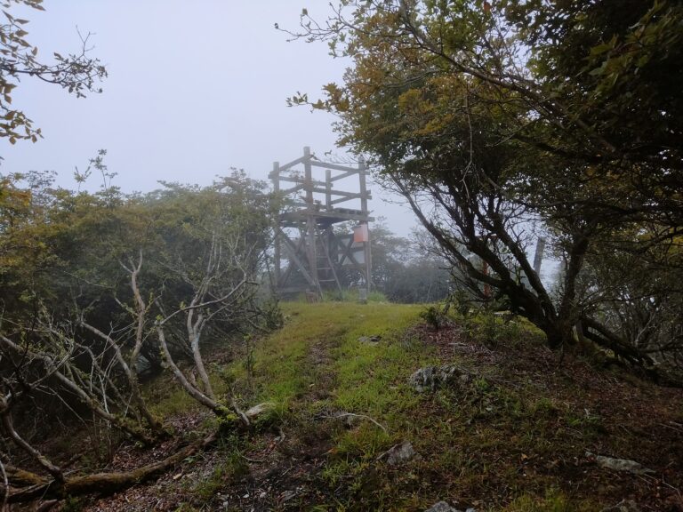 熊鷹山の展望台が見えました。残念ながら登ってもガスで何も見えません。