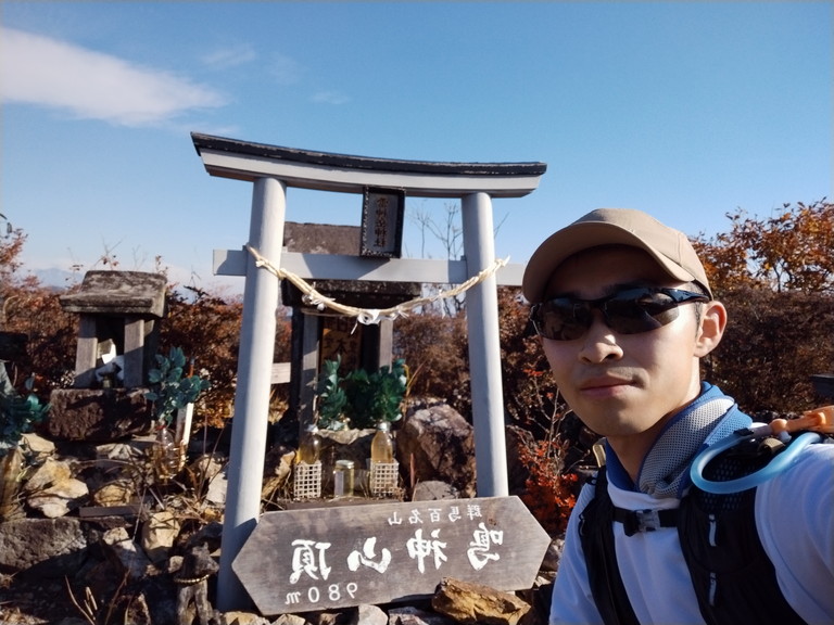 行動時間:3時間半ほど。累積標高1200m。鳴神山頂に到着しました。