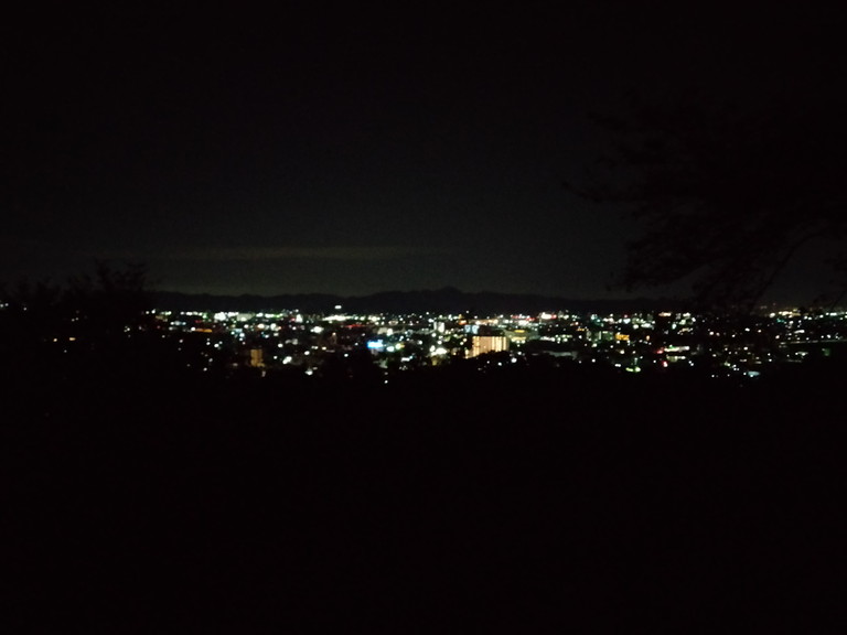 そんなこんな時間を消費してしまい、辺りはすっかり暗くなりました。66号線を南に歩いて水道山公園まで戻ります。