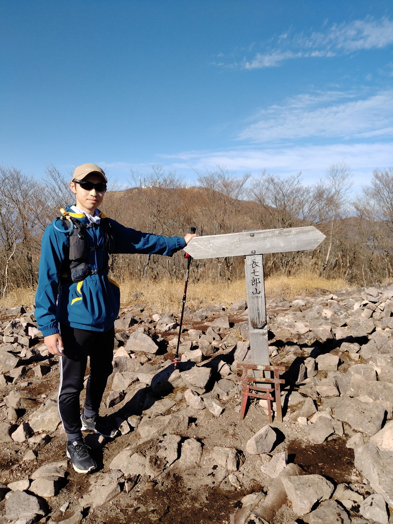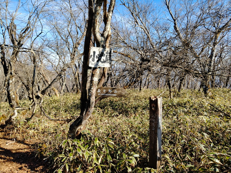 長七郎山頂。後ろに見える山が先ほどの地蔵岳。