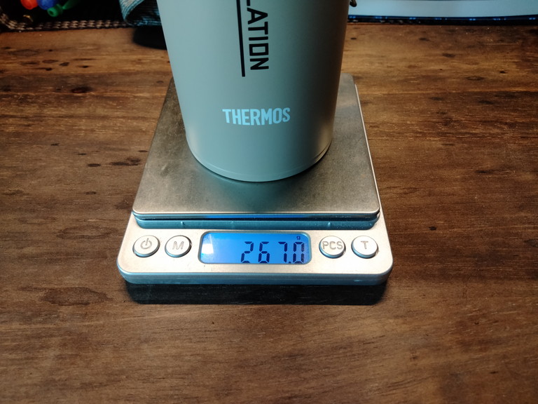 魔法瓶にしては非常に軽量ですが、保温性は高く、熱湯と言える温度を半日ほど維持する性能を持ちます。